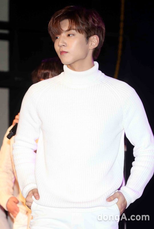 신예 4인조 보컬그룹 브로맨스의 이찬동이 5일 오후 서울 마포구 제일라아트홀에서 열린 두번째 미니앨범 'ROMANCE' 발매 쇼케이스에서 신곡 무대를 선보이고 있다.