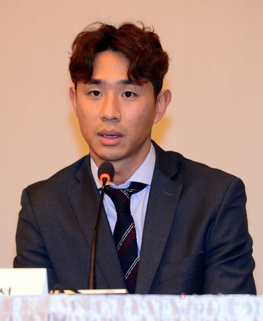 5일 강원도 강릉씨마크호텔에서 열린 2017 강원FC 선수단 기자회견에서 오범석이 취재진의 질문에 대답하고 있다.