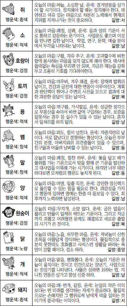 금일 복권, 주식, 부동산 매입 행운의 띠: 호랑이,말,개(토끼,양,돼지)