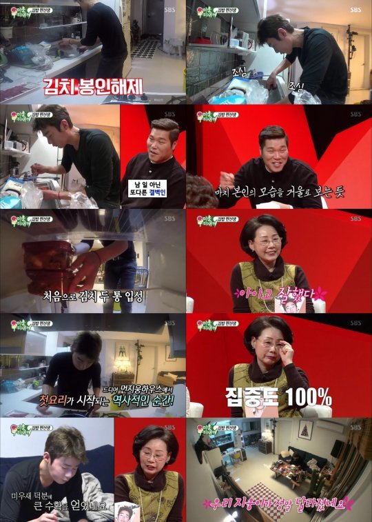 이후 허지웅은 새로 설치한 가스불 위에 새로 구입한 후라이팬을 놓고 새로 산 소고기를 구우며 감회에 젖기도 했다. 이 모습을 본 허지웅 어머니는 “모든 게 미우새 덕분이다. 이제 내가 담근 김치 지웅이에게 갖다 줄 수 있겠다”고 행복해 했고, 김건모 어머니도 “아유 장하다”며 칭찬해 훈훈한 모습을 보였다.