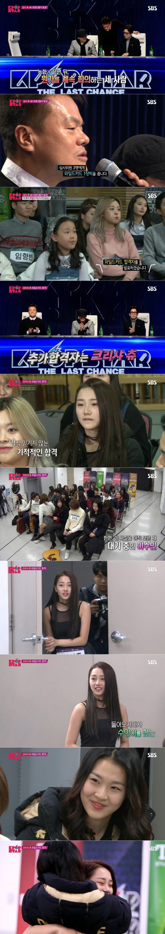 이날 모든 출연자의 무대가 끝나고 박진영, 양현석, 유희열은 오랜 시간 회의를 거듭했다. 박진영 심사위원은 “대진운에 의해 아쉽게 탈락한 사람들이 있다. 이런 모순을 피하기 위해 심사위원에게는 와일드 카드가 있다”며 이들은 각자 자신들의 와일드 카드 1장을 사용해 추가 합격 주인공을 선정하기로 했다.