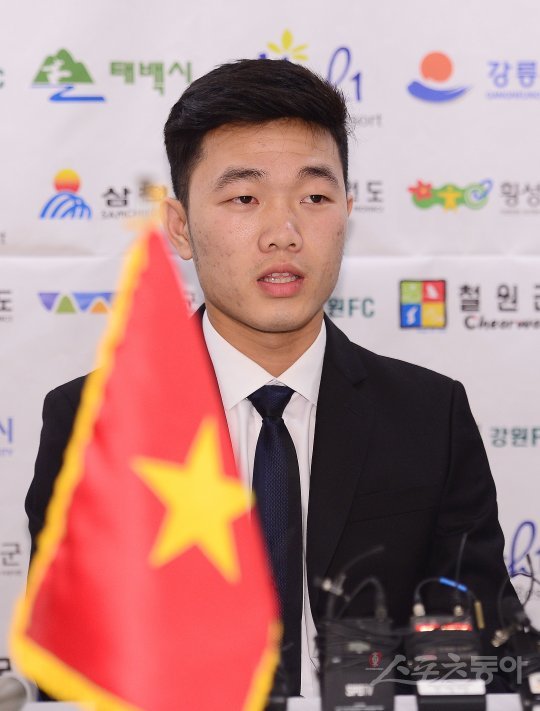 9일 서울 종로구 삼청동 주한 베트남 대사관에서 K리그 첫 베트남 출신 외국인 선수 르엉 쑤언 쯔엉의 강원FC 입단식이 열렸다. 쯔엉이 입단 소감을 밝히고 있다.