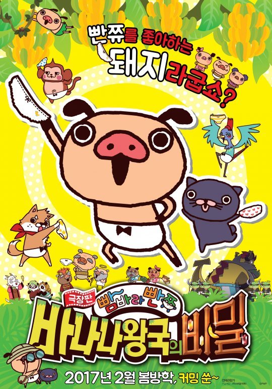 일본의 국민 캐릭터로 유아계의 대통령이라 불리며 큰 인기를 얻고 있는 꼬마 돼지 ‘빰바돈’과 그 가족들을 주인공으로 한 인기 TV 시리즈 애니메이션 [빰바라빤쮸]의 첫 극장판 ‘극장판 빰바라빤쮸: 바나나 왕국의 비밀’(이하 ‘극장판 빰바라빤쮸’)이 오는 2월 봄방학 국내 개봉을 확정하고 티저 포스터를 공개했다.