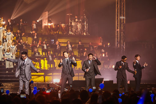 그룹 god는 세월호 참사 1000일을 하루 앞둔 8일 공연에서 노란 리본을 달고 ‘촛불하나’를 부르며 희생자들을 추모했다. 사진제공|god