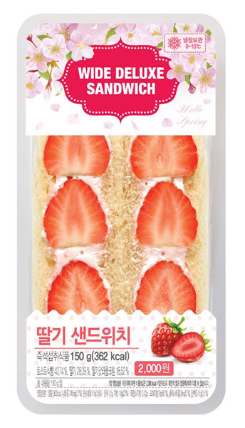 CU는 예년보다 온화한 날씨가 지속되면서 지난해보다 약 6주 정도 앞당긴 이달 17일부터 싱싱한 생딸기를 담은 ‘CU 딸기 샌드위치’(2000원)를 한정 판매한다. 지난해 3월 첫 선을 보인 CU 딸기 샌드위치는 20∼30대 여성들에게 큰 인기를 끌었다. 올해는 딸기 와플 크림의 중량을 지난해보다 25% 가량 늘렸고, 외부 노출을 최소화하는 탑실링 패키지를 사용했다.