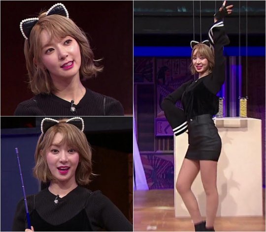 이날 초아는 순백의 의상으로 시청자들의 관심을 한 몸에 받았던 ‘눈의 여왕’ 설현과 달리 농염한 섹시미가 돋보이는 블랙색상의 캣우먼 의상을 입고 등장해 단숨에 이목을 집중시켰다. 특히 초아는 고양이 귀가 달려있는 머리띠를 장착하고 등장했는데, 귀여움과 섹시함을 동시에 소화해 등장과 함께 모든 이들의 마음을 심쿵하게 했다.