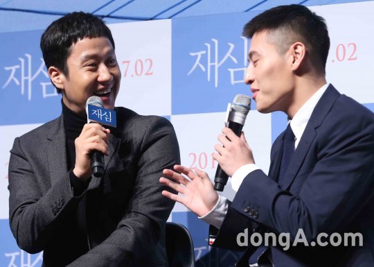 배우 정우(왼쪽)와 강하늘이 10일 오전 서울 강남구 압구정 한 멀티플렉스관에서 열린 영화 '재심' 제작보고회에 참석하고 있다.