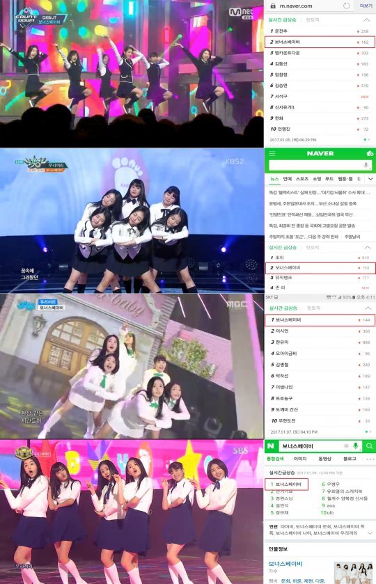 6인조 신인 걸그룹 보너스베이비(문희, 하윤, 채현, 다윤, 가온, 공유)가 데뷔 1주 만에 포털 실검 순위에 이름을 올렸다.