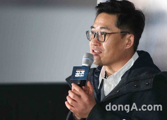 김성훈 감독이 10일 오후 서울 성동구 왕십리 한 멀티플렉스관에서 열린 영화 공조 언론시사회에 참석해 인사말을 하고 있다.