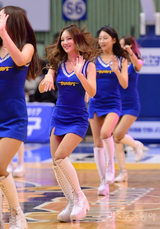 10일 잠실실내체육관에서 ‘2016-2017 KCC 프로농구’ 서울 SK나이츠와 서울 삼성썬더스의 경기가 열렸다. 삼성생명 치어리더들이 열정적인 무대를 펼치고 있다.