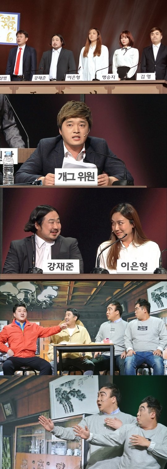 11일 방송되는 ‘개그청문회’에서는 결혼을 앞둔 실제 커플 강재준과 이은형 이 증인석에 앉는다. 두 사람은 첫 만남부터 결혼까지의 러브스토리를 공개하는데, 과거 개그우먼들의 인기를 한 몸에 받던 몸짱 강재준이 이은형의 치밀한 계획에 의해 사육당했다는 의혹에 관해 설전이 벌어진다. 또 예비 신랑 강재준이 이태원에서 진한 총각파티를 벌였다는 충격적인 의혹에 대해서도 집중적으로 추궁할 예정이다.