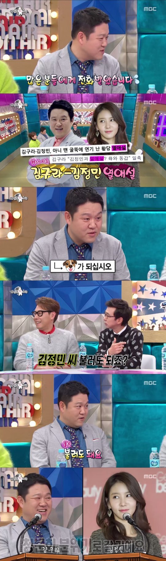 11일 오후 방송된 MBC 예능프로그램 ‘황금어장 라디오스타’(이하 ‘라디오스타’)에서는 최근 불거진 김정민과의 열애설에 대해 다시 한 번 언급하는 김구라의 모습이 그려졌다.