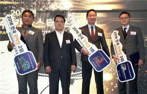 현대자동차(주)는 지난 13일 대형트럭 판매 우수사원을 선발하고 시상했다고 밝혔다. 올해 처음 실시된 대형트럭 판매 우수사원 시상은 한 해 동안 대형트럭을 가장 많이 판매한 직원에게 감사의 인사를 전하고 서로의 판매 노하우를 공유하고자 마련된 행사다. 이날 시상식에서는 지난해 총 157대의 대형트럭을 판매한 경기트럭지점 송재열 차장이 ‘2016년 대형트럭 판매왕’의 영예를 안았고, 143대를 판매한 서부트럭지점 강병철 부장과 123대를 판매한 광주트럭지점 김진환 부장이 각각 판매 우수자로 선정됐다. 휴일을 제외한 영업일 기준으로 1년 동안 대형트럭 157대를 판매하려면 약 하루 반나절 만에 1대 이상을 판매해야 달성 가능하다.