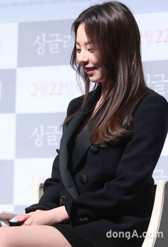 배우 안소희가 18일 오전 서울 강남구 압구정 한 멀티플렉스관에서 열린 영화 싱글라이더 제작보고회에 참석하고 있다.