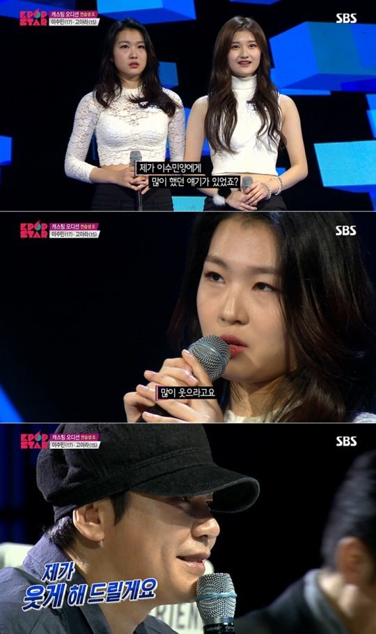 양현석은 이 날 방송에서 이수민X고아라의 ‘BangBang’ 무대를 본 뒤 이수민을 향해 “제가 웃게 해드릴게요. 이수민 양을 YG로 캐스팅 하겠습니다”라고 말해 모두를 깜짝 놀라게 했다.