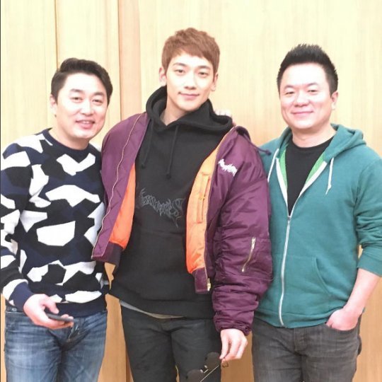 가수 비와 컬투 정찬우, 김태균의 훈훈한 인증샷이 공개됐다.