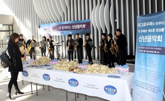 이날 자선음악회는 환우들을 위한 병원 연주회와 지하철역사 연주회를 정기적으로 개최해오고 있는 ‘더 브레쓰 색소폰 앙상블’이 칠레 친환경 농축산기업 아그로수퍼와 손잡고 마련한 무대.