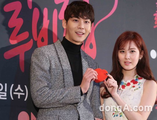 배우 이철우(왼쪽)와 걸그룹 소녀시대의 서현이 17일 오후 서울 마포구 상암동 CJ E&M센터에서 열린 온스타일 첫 웹드라마 '루비루비럽' 제작발표회에 참석해 포토타임을 하고 있다.