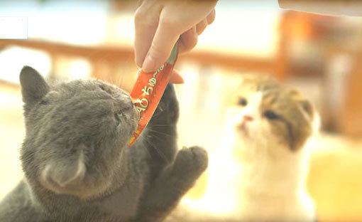 챠오 츄르를 먹고 있는 고양이. 사진제공|와이앤케이커머스