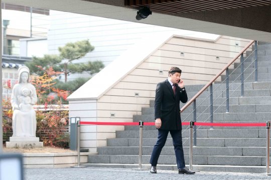 가수 비와 배우 김태희의 혼인미사로 열리는 19일 오후 서울 종로구 가회동 성당에서 한 관계자가 분주하게 움직이고 있다.