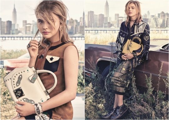 클로이 모레츠는 개성 있는 스타일로 당당하면서도 쿨한 아메리칸 애티튜드를 여과 없이 보여주었다. 플로럴 드레스에 가죽 자켓을 스타일링 하여 로맨틱하면서도 터프한 매력의 바이커 느낌을 연출했다. 화려한 패턴의 실크 스카프를 액세서리로 연출하여 쿨한 뉴욕 스타일을 완성하기도 했다. 특히 공예 작업에서 영감을 받은 커스텀 메이드 리벳과 스터드 디테일, 쥬얼 장식과 스네이크 스킨을 핸드백에 사용하여 미국 서부의 느낌을 완벽하게 담아냈다.
