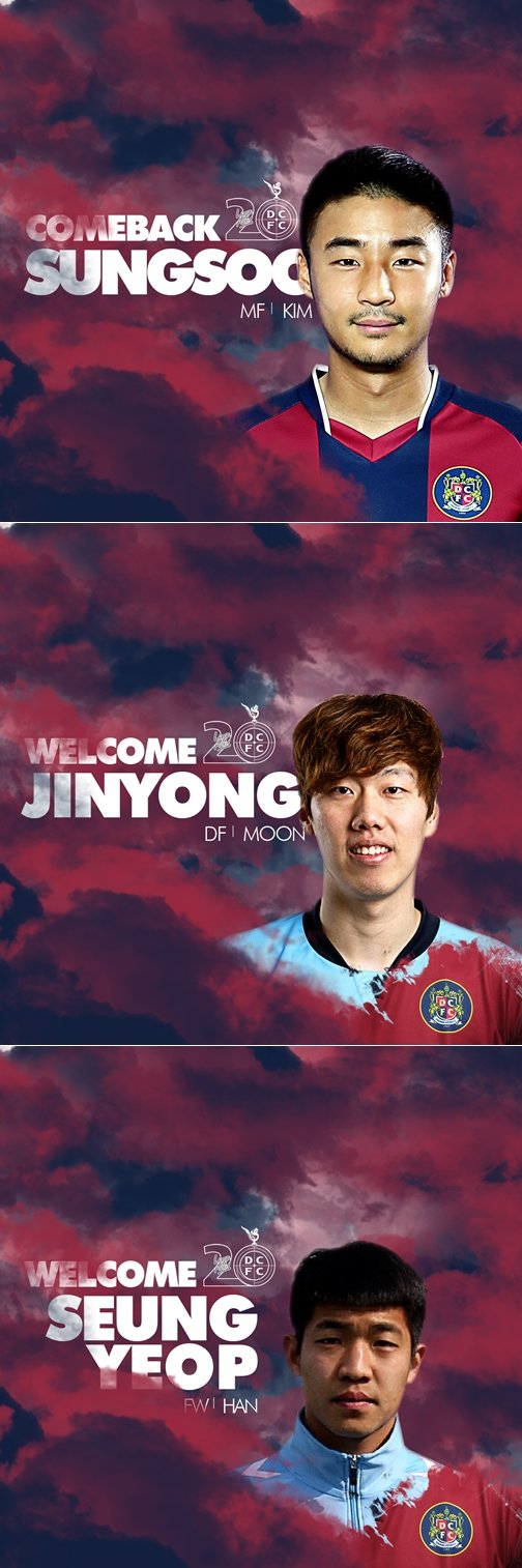 프로축구 K리그 챌린지 대전시티즌이 공격수 한승엽과 수비수 문진용, 미드필더 김성수를 영입하며, 여러 포지션에서 폭넓은 보강을 이뤘다.