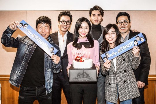 100만 돌파를 기념해 공개된 인증샷에는 현빈 유해진 김주혁 장영남과 김성훈 감독 그리고 윤아의 모습이 담겨 있다. 특히 윤아는 소녀시대 센터답게 인증샷에서도 센터를 지키며 미모를 뽐내 눈길을 끈다.