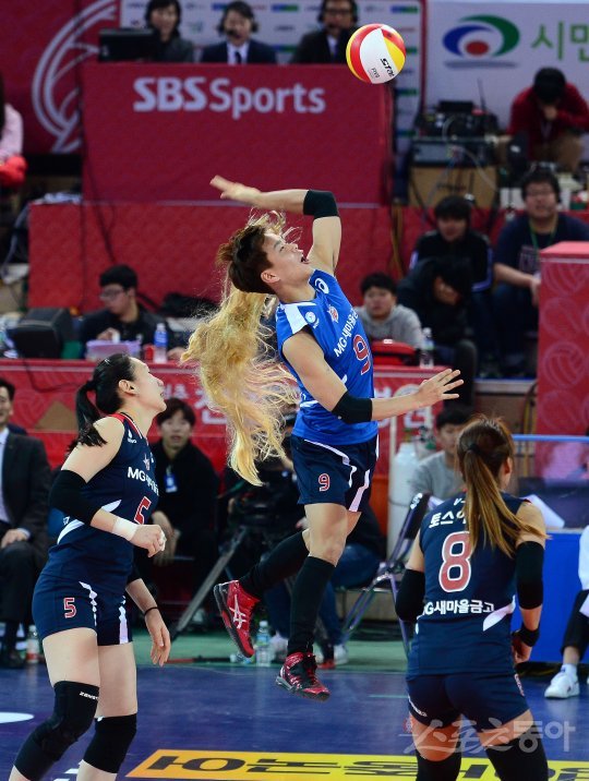 ‘NH농협 2016~2017 V리그’ 올스타전이 22일 천안유관순체육관에서 열렸다. V스타 정민수가 여자부 경기에 참가해 스파이크를 때리고 있다.