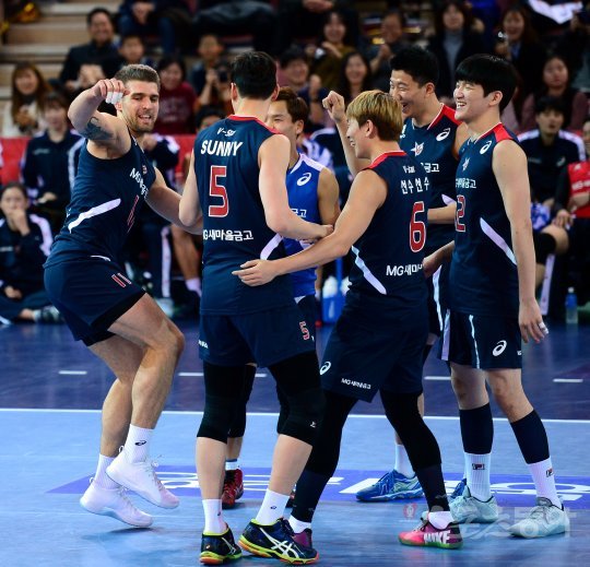 ‘NH농협 2016~2017 V리그’ 올스타전이 22일 천안유관순체육관에서 열렸다. V스타 파다르가 득점에 성공한 후 춤을 추며 즐거워 하고 있다.