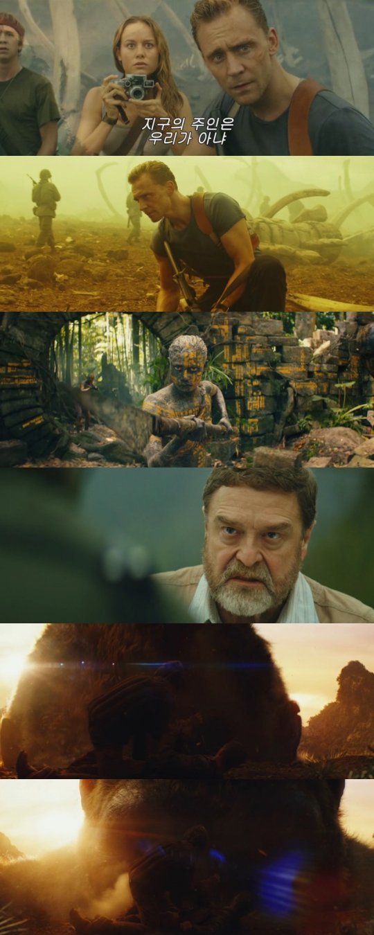 공개된 메인 예고편은 미지의 섬 스컬 아일랜드를 찾아 탐사를 떠난 사람들이 불시착한 섬의 주아인 ‘콩’과 더불어 그 적들인 미지의 생명체까지 마주치면서 위험에 빠지는 과정이 담겨 있다. 특히 이번 작품에 등장하는 킹콩은 이전 영화 속 킹콩들보다 무려 2배 이상 몸집이 커져 역대급 스케일을 예고한다. 뿐만 아니라 상상을 초월하는 다양한 크리쳐들을 확인할 수 있다.