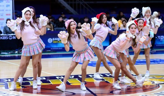 23일 인천 도원체육관에서 열린 ‘삼성생명 2016-2017 여자프로농구’ 인천 신한은행과 부천 KEB하나은행의 경기에서 신한은행 치어리더가 화려한 공연을 선보이고 있다.