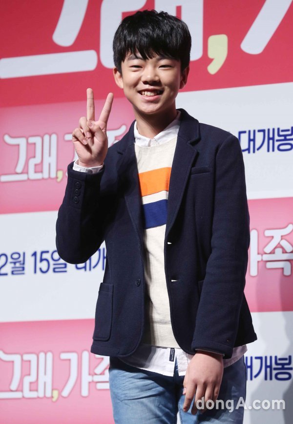 아역배우 정준원이 25일 오전 서울 강남구 한 멀티플렉스관에서 열린 영화 '그래, 가족' 제작보고회에서 포토타임을 하고 있다.
