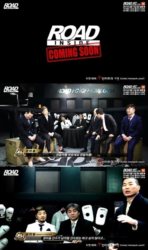 ROAD FC (로드FC)는 25일 100만불 토너먼트 ‘ROAD TO A-SOL’에 출전하는 남의철, 김창현, 홍영기, 김원기, 박대성과 ‘라이트급 챔피언’ 권아솔이 한 자리에 모여 진행한 ‘ROAD INSIDE’의 예고편을 공개했다.