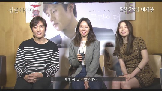 ‘싱글라이더’에서 모든 것을 잃은 남자 ‘재훈’ 역을 맡은 이병헌과 ‘재훈’의 아내 ‘수진’ 역의 공효진 그리고 호주로 워킹홀리데이를 온 ‘지나’ 역의 안소희가 민족 대명절 설날을 맞이해 직접 새해 인사를 전했다.