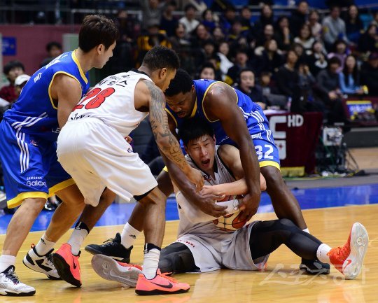 30일 잠실실내체육관에서 열린 ‘2016~2017 KCC 프로농구’ 얀양KGC인삼공사와 서울삼성 경기에서 KGC인삼공사 오세근과 삼성 크레익이 루즈볼을 다투고 있다.