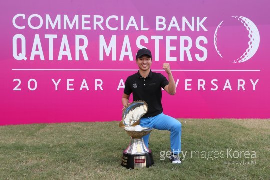 왕정훈이 29일(한국시간) 카타르 도하골프장에서 열린 유러피언투어 카타르마스터스에서 시즌 첫 승을 거뒀다. 데뷔 후 29경기 만에 통산 3승째를 따낸 왕정훈은 세베 바예스테로스, 타이거 우즈에 이어 유러피언투어 역대 최소경기 3승을 달성한 선수가 됐다. 사진=ⓒGettyimages이매진스