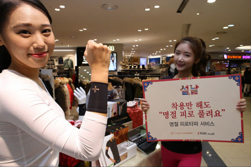여성들을 위한 ‘명절 증후군 퇴치 서비스’도 눈에 띈다. 아이파크백화점 아웃도어 매장이 대표적이다. 31일부터 당일 30만원 이상 구매고객에게 피로 회복에 도움을 주는 기능성 웰니스웨어 ‘타미카퍼’ 손목 보호대를 선착순으로 증정한다. 손목과 무릎 타미카퍼 보호대를 착용하면 혈액 순환을 향상시켜 피로 회복과 통증, 붓기 완화에 효험을 볼 수 있다는 게 회사 측 설명이다.