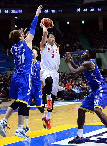 KGC 이정현(가운데)이 30일 삼성과의 원정 경기서 15점·7어시스트를 올려 팀의 83-73 승리를 견인했다. 3연승을 달린 KGC는 선두를 지켰다. 잠실| 김종원 기자 won@donga.com