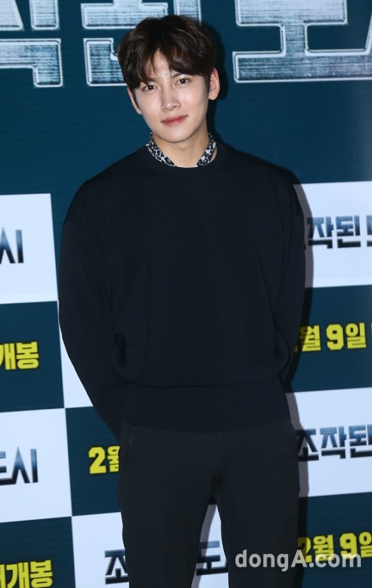 배우 지창욱이 31일 오후 서울 성동구 왕십리CGV에서 열린 영화 '조작된 도시' 언론시사회에 참석해 포토타임을 하고 있다.