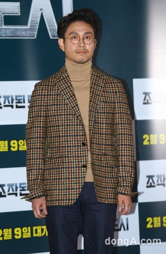배우 오정세가 31일 오후 서울 성동구 왕십리CGV에서 열린 영화 '조작된 도시' 언론시사회에 참석해 포토타임을 하고 있다.