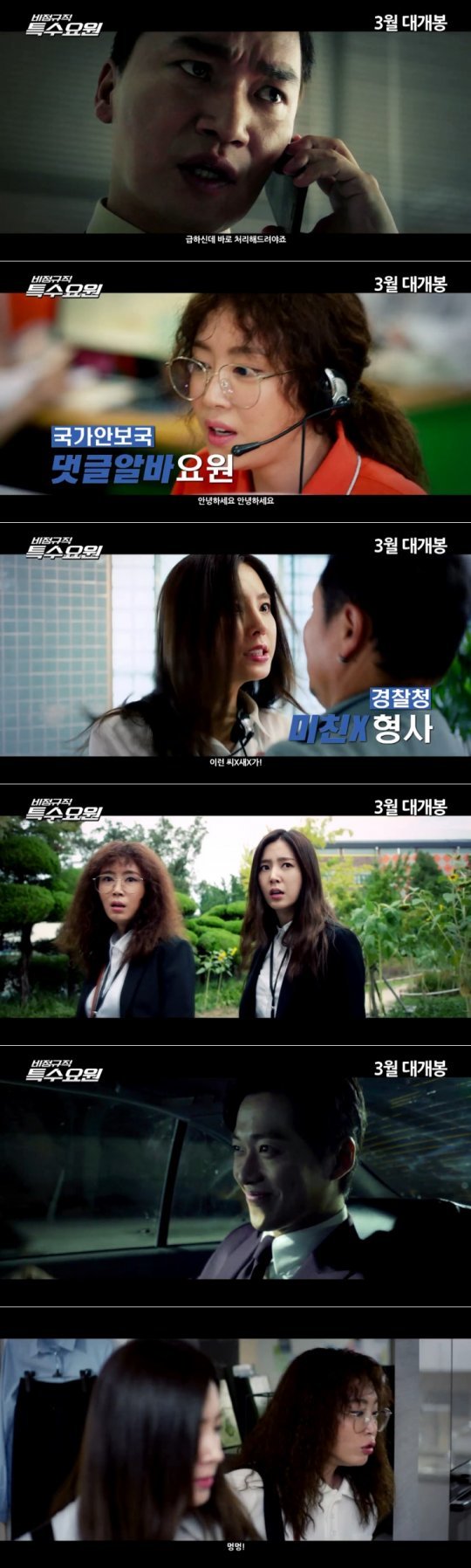 이번에 공개한 티저 예고편은 비장한 음악과 함께 국가안보국 차장 역의 조재윤의 등장으로 시선을 사로잡는다. 대한민국 고위직으로서 위대한 일을 행하는 것 같지만 사실 그가 받은 전화는 보이스피싱 사기단! 단 한 통의 전화 때문에 벌어진 실수로 국가 예산이 홀랑 날아가버린 위기에 처하자 비밀리에 이 사건을 수습하기 위해 안보국 댓글요원 강예원을 선택한다. 하지만 한편으로는 보이스피싱 일당을 일망타진하기 위해 경찰청 미친X로 불리는 형사 한채아가 이미 잠복근무를 하고 있는 상황이다. 직장사수 VS 임무완수라는 같은 임무 다른 목적을 가진 두 사람의 코믹 케미가 기대를 불러 일으킨다.