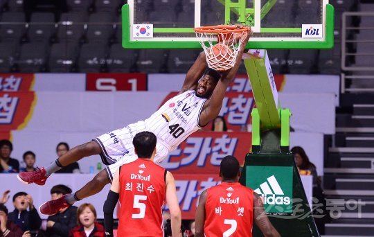 3일 고양실내체육관에서 ‘2016~2017 KCC 프로농구’ 고양오리온과 창원LG의 경기가 열렸다. 창원LG 메이스가 앨리웁 덩크를 성공시키고 있다.