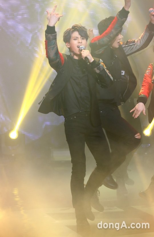 그룹 SF9이 6일 오후 서울 광진구 올림픽공원 K아트홀에서 열린 첫 미니앨범 '부르릉' 쇼케이스에 참석해 공연을 하고 있다.