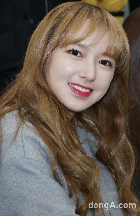 걸그룹 우주소녀의 성소가 7일 오전 서울 구로구 서울공연예술고등학교에서 열린 졸업식에 참석하기 전에 포토타임을 하고 있다.