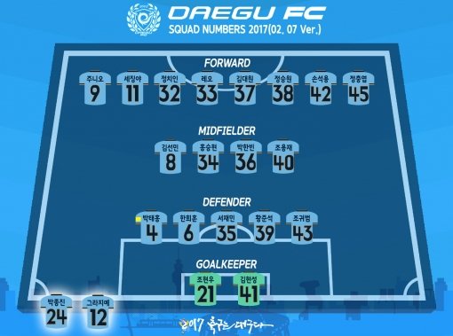 프로축구 K리그 클래식 대구FC가 주요 선수들의 등번호를 미리 공개했다.