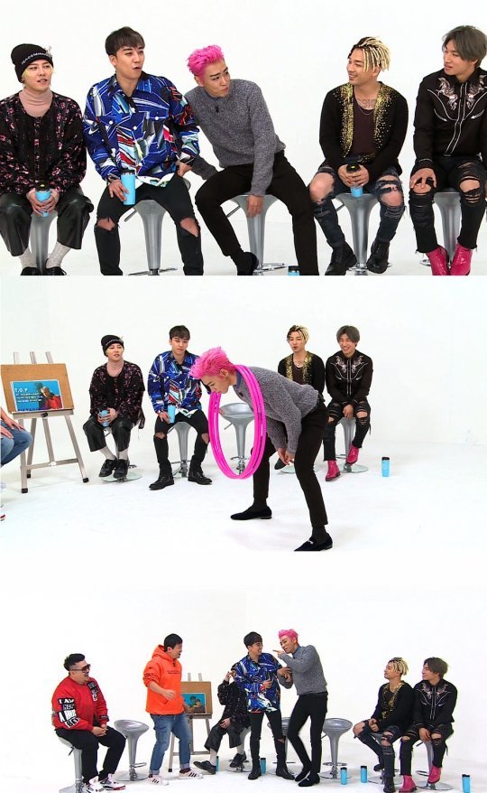 특히 맏형 탑의 경우 업그레이드 된 무아지경 프리댄스를 선보이며 큰 웃음을 선사했는데, 빅뱅 메인댄서 태양마저 “탑 형 춤은 행위예술 같다”고 칭찬하여 스튜디오를 초토화 시켰다고. 이밖에도 데뷔 12년 차 빅뱅의 인생철학이 담긴 명언은 물론, 예능천재 대성의 예능 필살기가 공개된다.