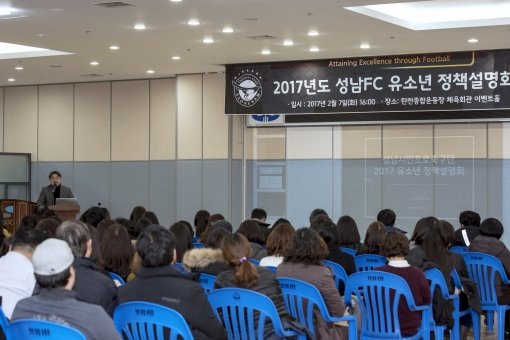 프로축구 K리그 챌린지 성남FC가 ‘2017년 유소년 정책설명회’를 개최하며 유소년 학부모들과 함께 구단의 육성 체계 시스템을 공유했다.