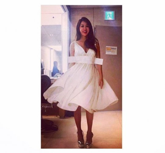 엄정화는 8일 자신의 인스타그램에 “드라마 포스터촬영. 멋진 스타일리스트 석원씨가 입혀준 종이인형 놀이 드레스예요 마를린먼로처럼 환기구를 찾을 필요가 없네요~”라는 글과 함께 사진 한 장을 게재했다.