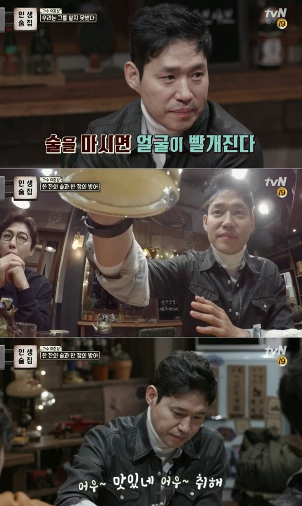 유준상은 9일 방송된 tvN 예능 프로그램 ‘인생술집’에서 “술을 마시면 얼굴이 빨개진다. 취하지는 않는다”고 밝혔다.