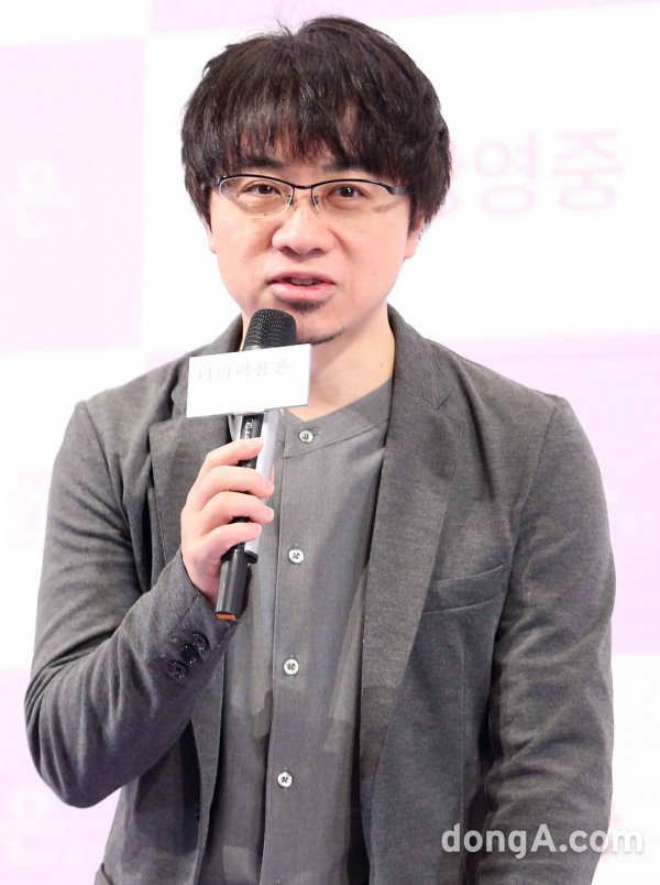 신카이 마코토 감독이 10일 오전 서울 강남구 임피리얼호텔에서 열린 애니메이션 '너의 이름은' 국내 350만 관객 돌파 기념 앙코드 내한 기자회견에 참석해 인사말을 하고 있다.